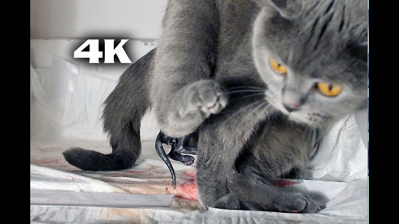 Pregnant Cat Giving Birth to 2 Kittens NEW UHD 4K Cute