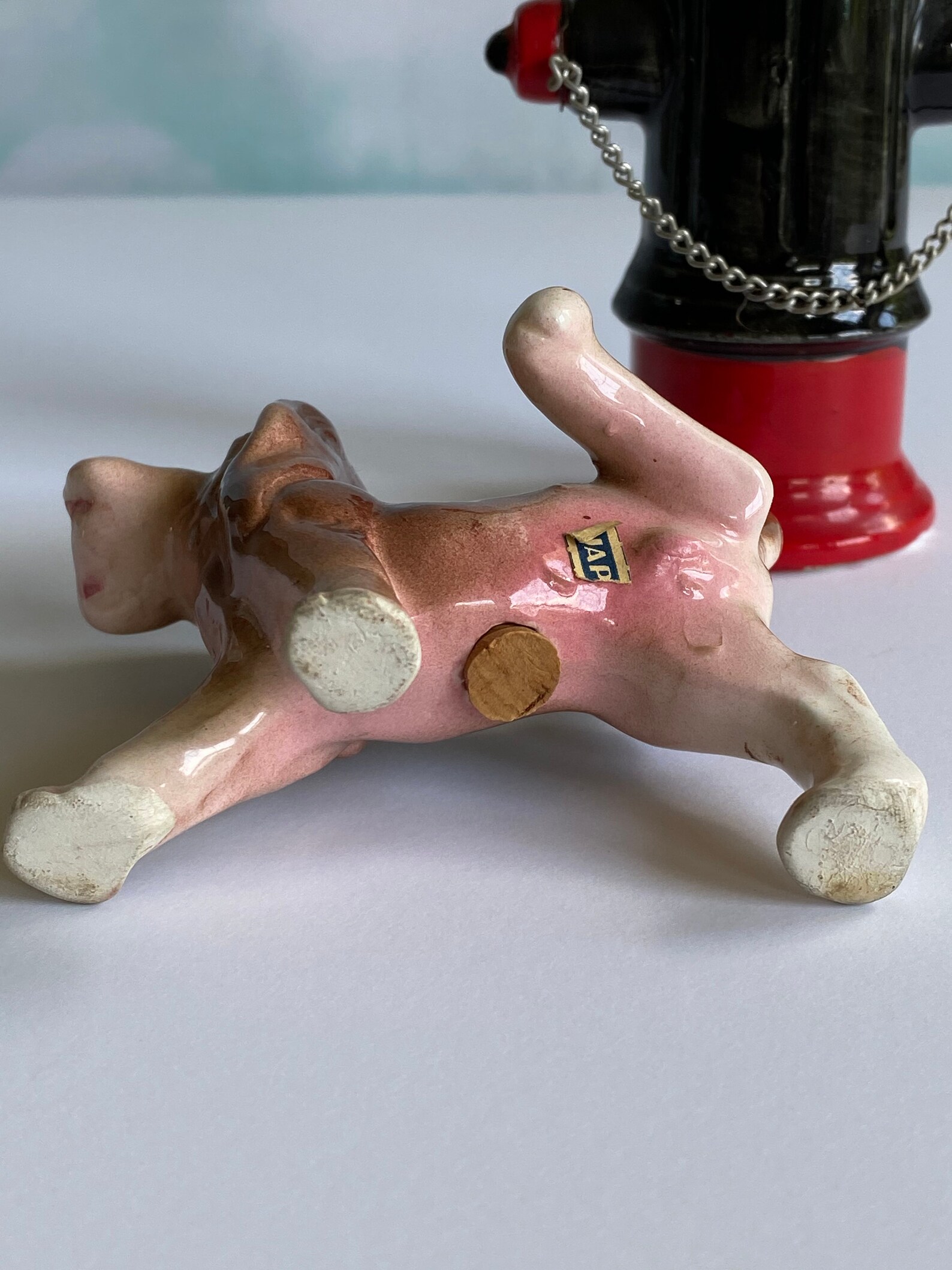 Vtg Dog and Hydrant Salt and Pepper Shakers Dog Hiking Leg